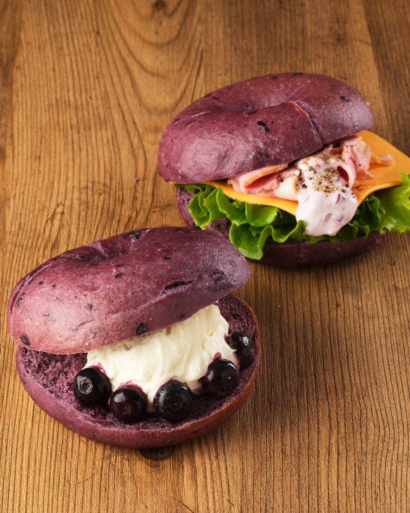 国産ブルーベリーを練り込んだ、もちもち食感の特製ベーグル。