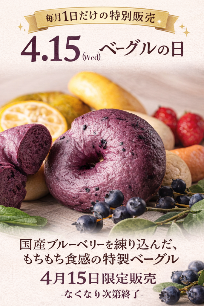 ※ブルーベリーベーグルの販売は「亀有本店」のみの販売となります。ご注意ください。